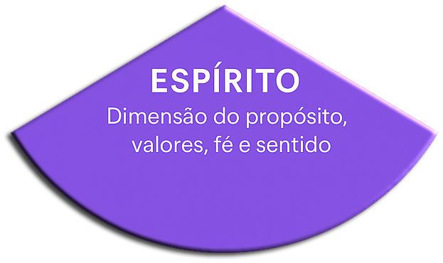 O espírito é a dimensão que conecta a pessoa a algo maior — seja Deus, valores, propósito ou sentido de vida. Ele funciona como um “instrumento” que orienta a direção da existência. Quando está fortalecido, traz clareza e propósito; quando está fragilizado, abre espaço para crises existenciais.